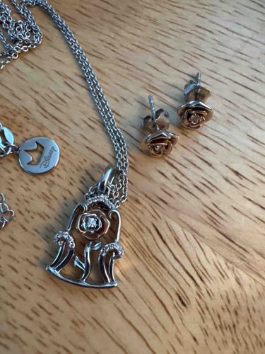 Enchanted Disney Fine Jewelry Beauty and the Beast Rose Necklace and Earrings Set