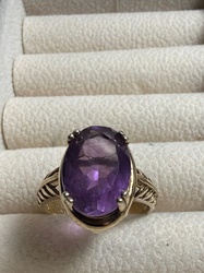 14k Gold Oval Amethyst Solitaire Ring
