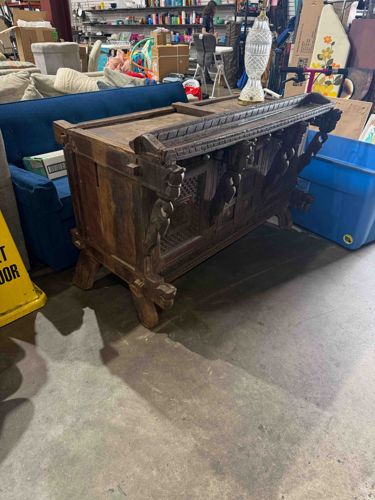 Antique Carved Wood Damchiya (Indian Dowry Chest or Sideboard)