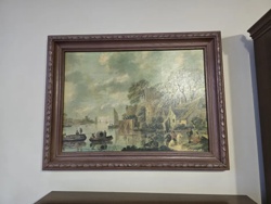 Dutch Style River Landscape Painting with Ornate Frame