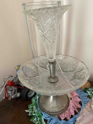 Early 20th Century Epergne with Pressed Glass Bowls and Silver-Tone Metal Base