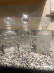 Trio of Vintage Pressed and Cut Glass Spirit Decanters