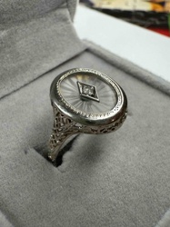 Art Deco Camphor Glass Diamond Sunburst Filigree Ring