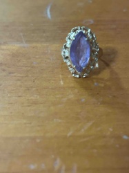 Vintage 14k Gold Marquise-Cut Amethyst Ring with Nugget-Style Halo