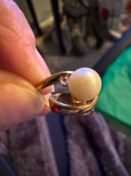 18k Gold Pave Diamond and Cultured Pearl Bypass Ring