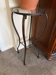 Modern Wrought Iron and Glass Pedestal Plant Stand