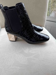Women's Croc-Embossed Patent Chelsea Boots with Metallic Block Heel