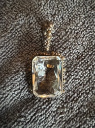 Emerald-Cut Rock Crystal or Paste Glass Pendant with Granulated Silver Setting