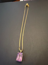 Emerald-Cut Pink Morganite or Kunzite Pendant on 14k Gold Chain