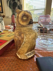 Vintage Figural Owl Ceramic Decanter with 'BIBITE' Banner