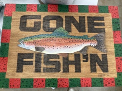 Ralph Newton "Gone Fish'n" Folk Art Wooden Sign