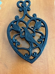 Cast Iron Heart-Shaped Distelfink and Tulip Trivet