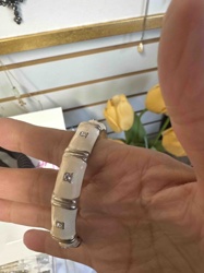 Coach White Enamel 'C' Logo Hinge Bangle Bracelet with Rhinestones