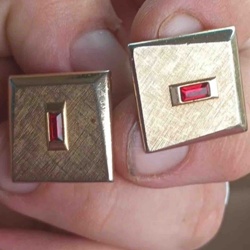 Mid-Century Modern Square Gold-Tone Cufflinks with Ruby-Tone Accents