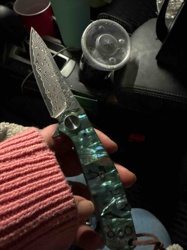 Abalone Inlay Damascus Steel Folding Pocket Knife