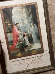 Vintage Polish First Holy Communion Certificate and Commemorative Lithograph