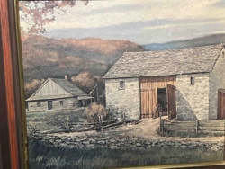 Autumn Landscape with Stone Barn and Cabin by Eric Sloane