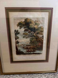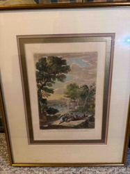 Framed Hand-Colored Landscape Engraving, Claude Lorrain style