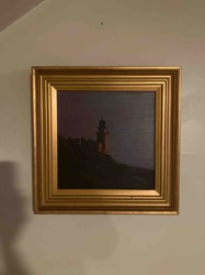 Twilight Lighthouse Oil Painting in Gilt Frame