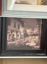 Framed European Street Scene Watercolor or Tinted Lithograph