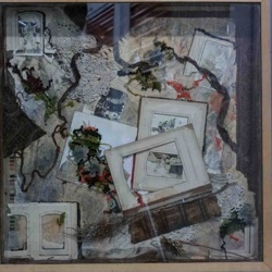 Mixed-Media Shadowbox Assemblage depicting Vintage Ephemera
