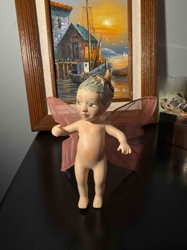 Vintage Bisque Porcelain Fairy Doll with Fabric Stand