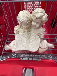 Vintage Resin Two Children Birdfeeder or Trinket Dish Figurine