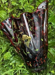 Vintage Bohemian Tortoise Shell Art Glass Fan Vase