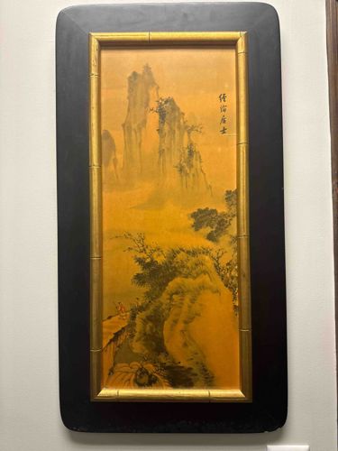 Chinese Shan Shui Silk Painting in Faux-Bamboo Gilt Frame