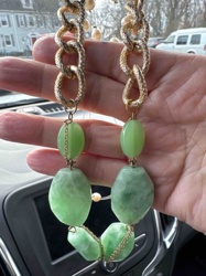 Multi-Strand Statement Necklace with Faux Jade and Textured Gold-Tone Links