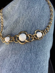 Vintage Trifari Gold-Tone Floral Choker with Faux White Chalcedony