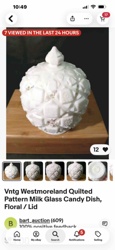 Westmoreland Quilted Pattern White Milk Glass Covered Candy Dish