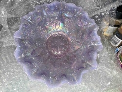 Fenton Holly Pattern Ruffled Carnival Glass Bowl in Lavender/Wisteria