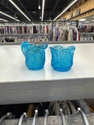 L.G. Wright S repeat blue opalescent sugar and creamer set