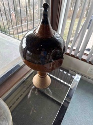 Mid-Century Modern Triple-Spouted Metallic Glazed Ceramic Bulbous Vessel