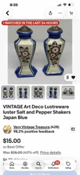 Vintage Art Deco Lusterware Salt and Pepper Shakers (Made in Japan)
