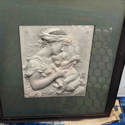 Neoclassical Style Bisque Porcelain Bas-Relief Plaque of Mother and Child