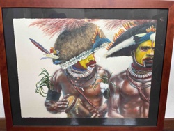 Framed Portrait of Huli Wigmen of Papua New Guinea