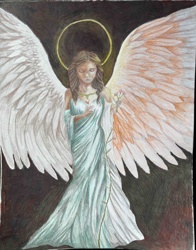 Original Colored Pencil Illustration of a Winged Angel