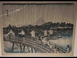 Utagawa Hiroshige Japanese Woodblock Print: Sudden Shower over Nihonbashi Bridge
