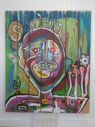 Mixed-Media Assemblage Painting with Found Objects