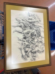 Framed Figural Pencil and Charcoal Sketch