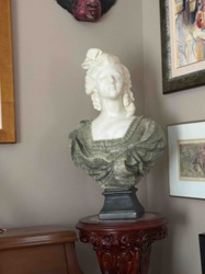Neoclassical Style Bicolor Carved Alabaster or Marble Bust of a Noblewoman
