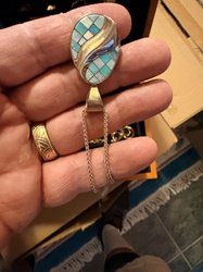 Modernist Opal Inlay and Sterling Silver Pendant