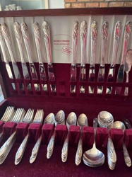 Vintage Stainless Steel Flatware Set in Wood Chest