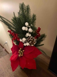 Artificial Holiday Floral Arrangement with Poinsettia and Evergreen
