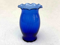 Cobalt Blue Glass Vase with Hand-Painted Floral Decor and Ribbed Base