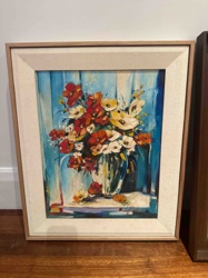 Signed Mid-Century Floral Still Life Oil Painting by J. Schgeti