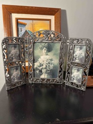 Vintage Art Nouveau Style Five-Panel Pewter Triptych Picture Frame