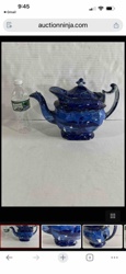 Historical Flow Blue 'Boston Harbor' Teapot with Eagle Shield